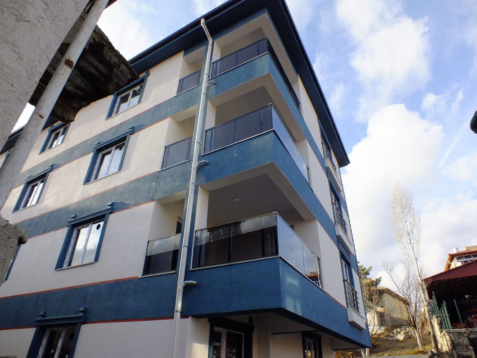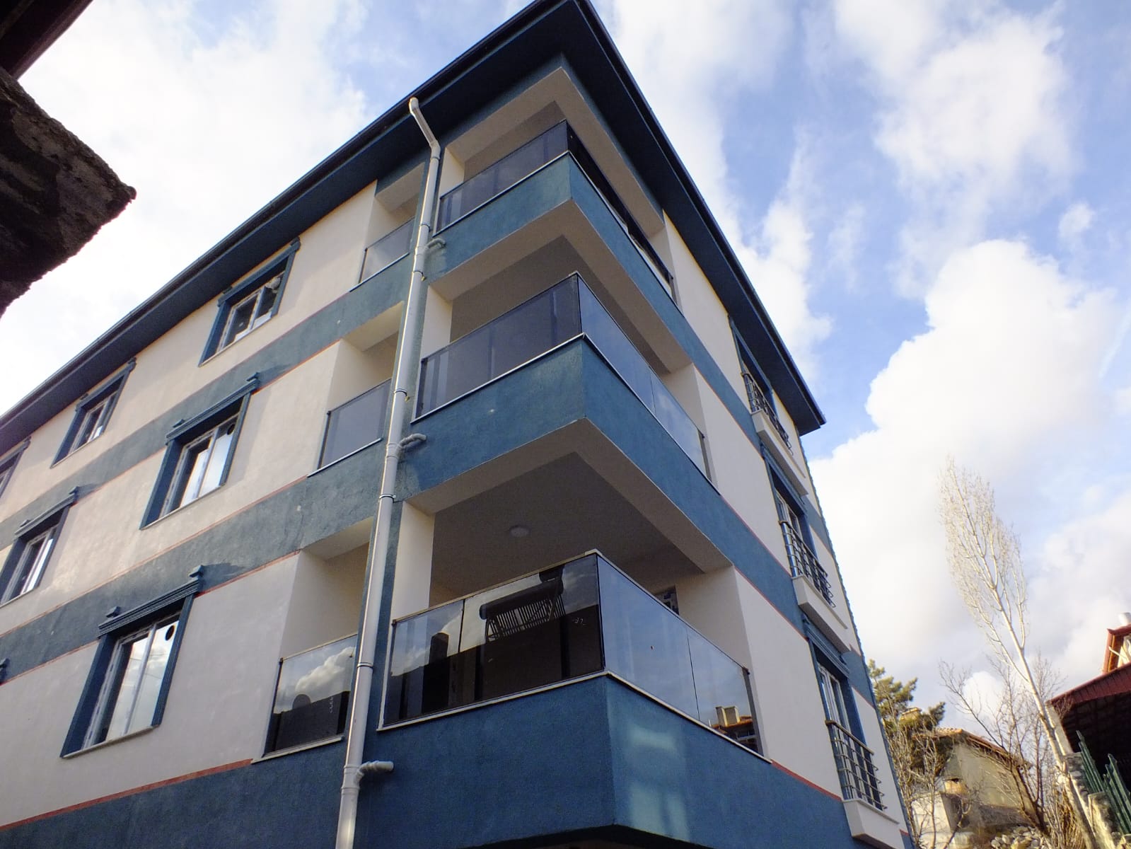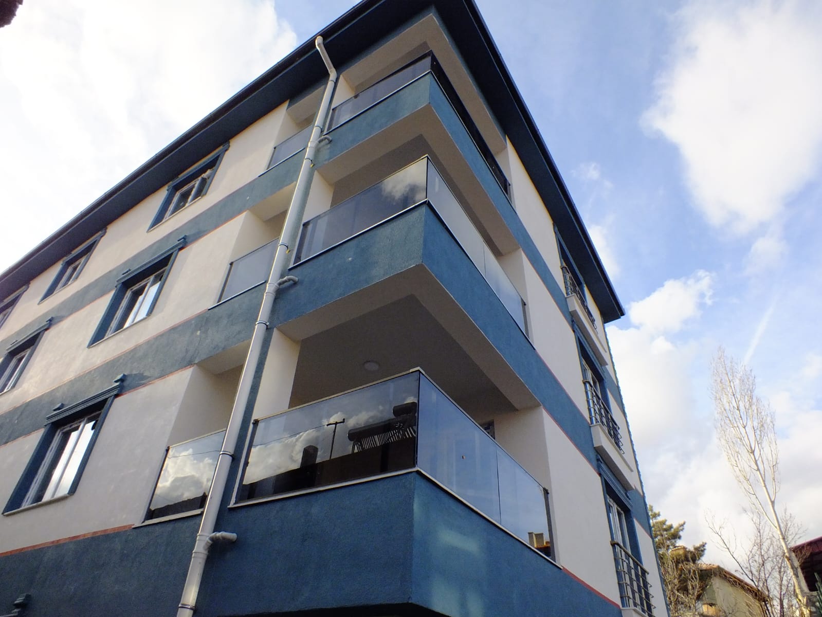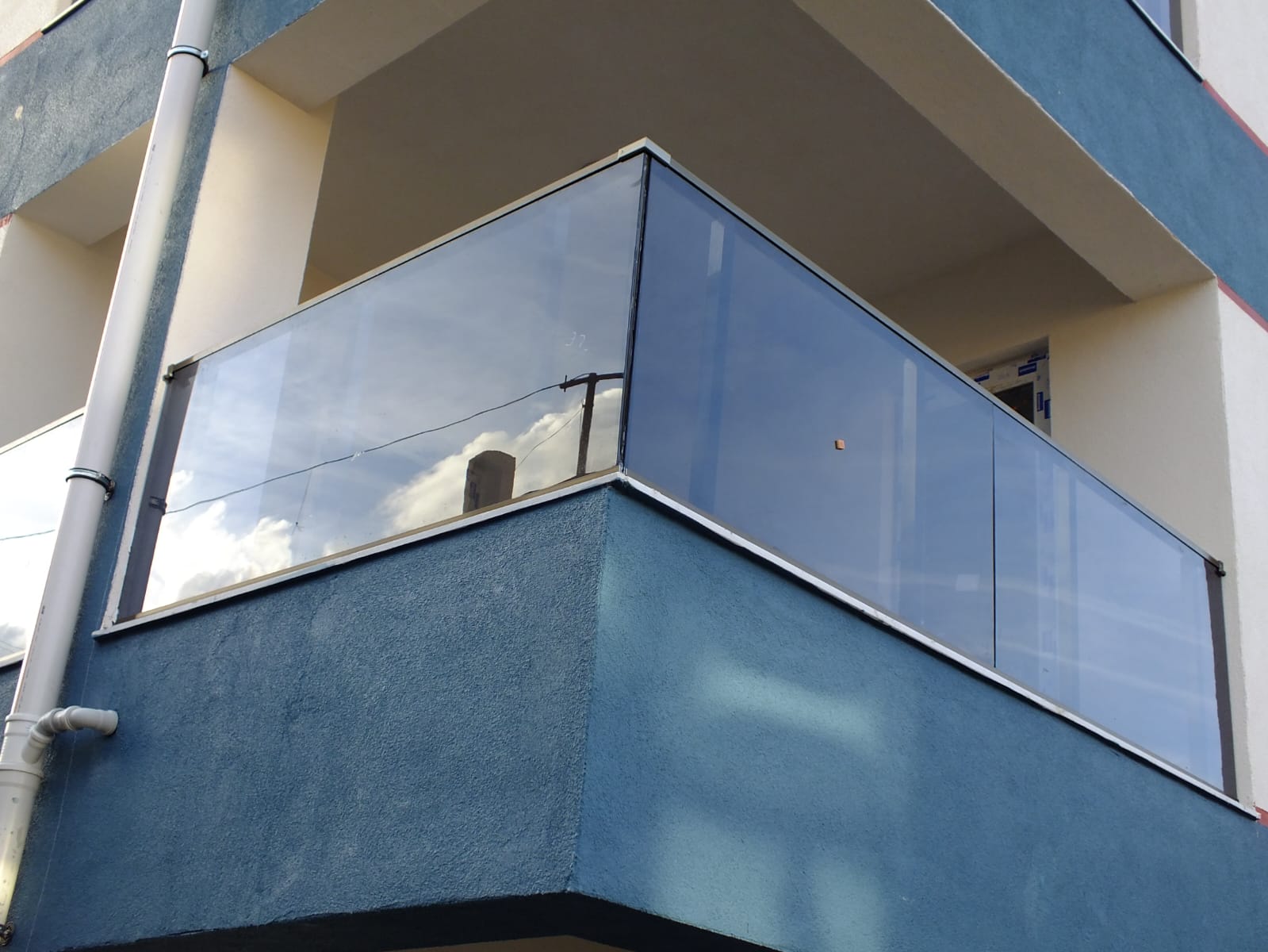 Dış cephede kullanılan camlı balkon korkulukları, modern mimariyle bütünleşerek binaya şık ve güvenli bir görünüm kazandırdı. Alüminyum profil üzerine sabitlenen temperli cam paneller, hem dayanıklılığı hem de estetik duruşuyla fark yarattı. İç mekan merdiven korkuluklarında ise parlak yüzeyli, paslanmaz profiller tercih edilerek yapı içinde modern ve sağlam bir geçiş sağlandı.